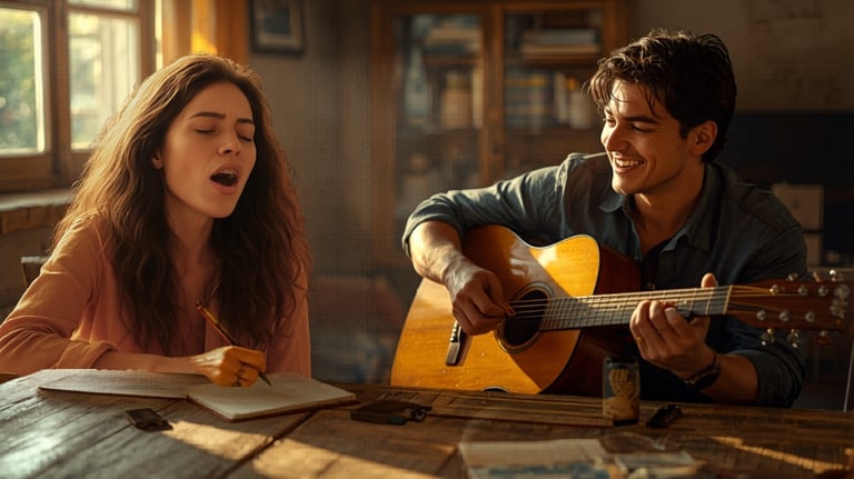 Esta es una mentoría personalizada, dónde te guío paso a paso para escribir canciones reales que emocionen, conecten y reflejen tu historia, sin depender de instrumentos ni teoría complicada.